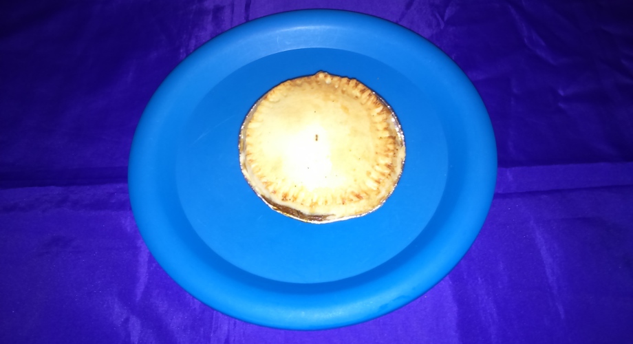 7. Place the small circle of pastry on top of the lamb and gently press around the edge of the pie to secure.