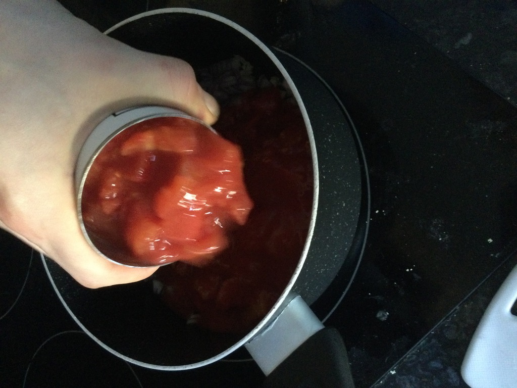 3. Add the chopped tomatoes to the saucepan