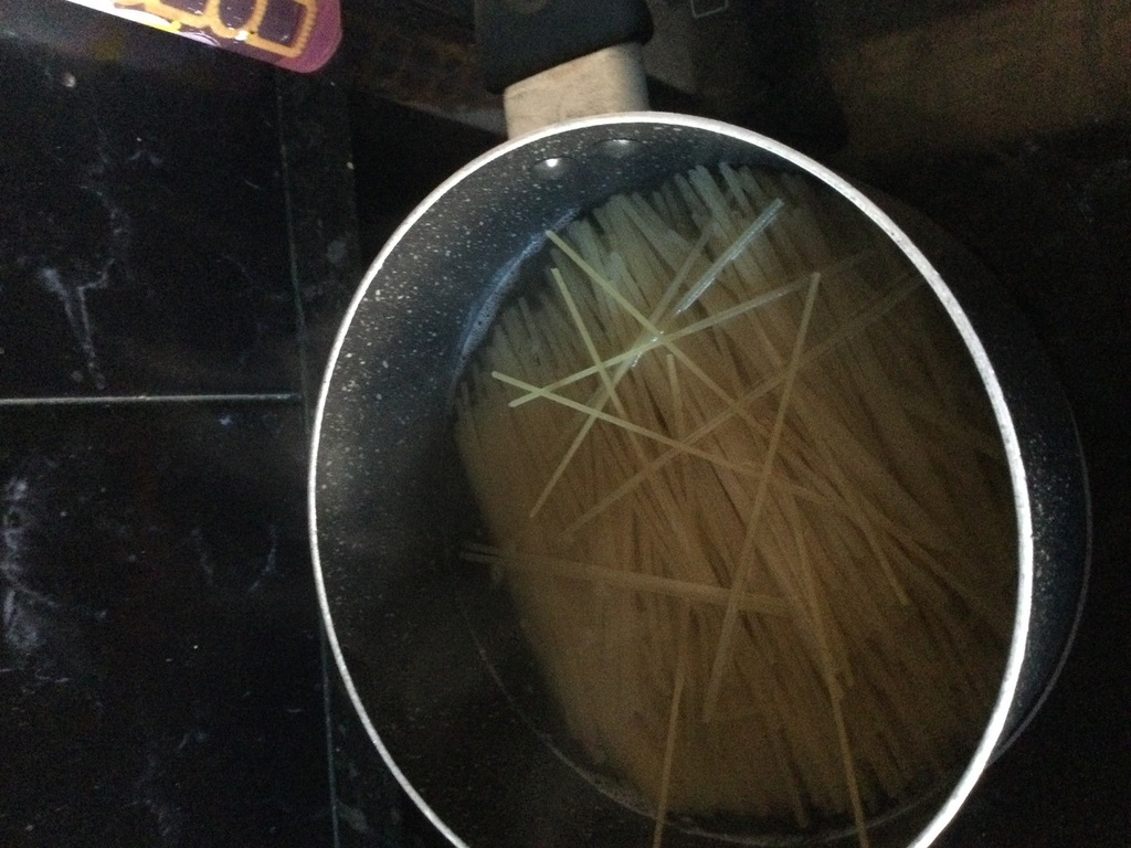 7. 5 - 10 minutes before sauce is ready, put pasta in a saucepan with boiling water.