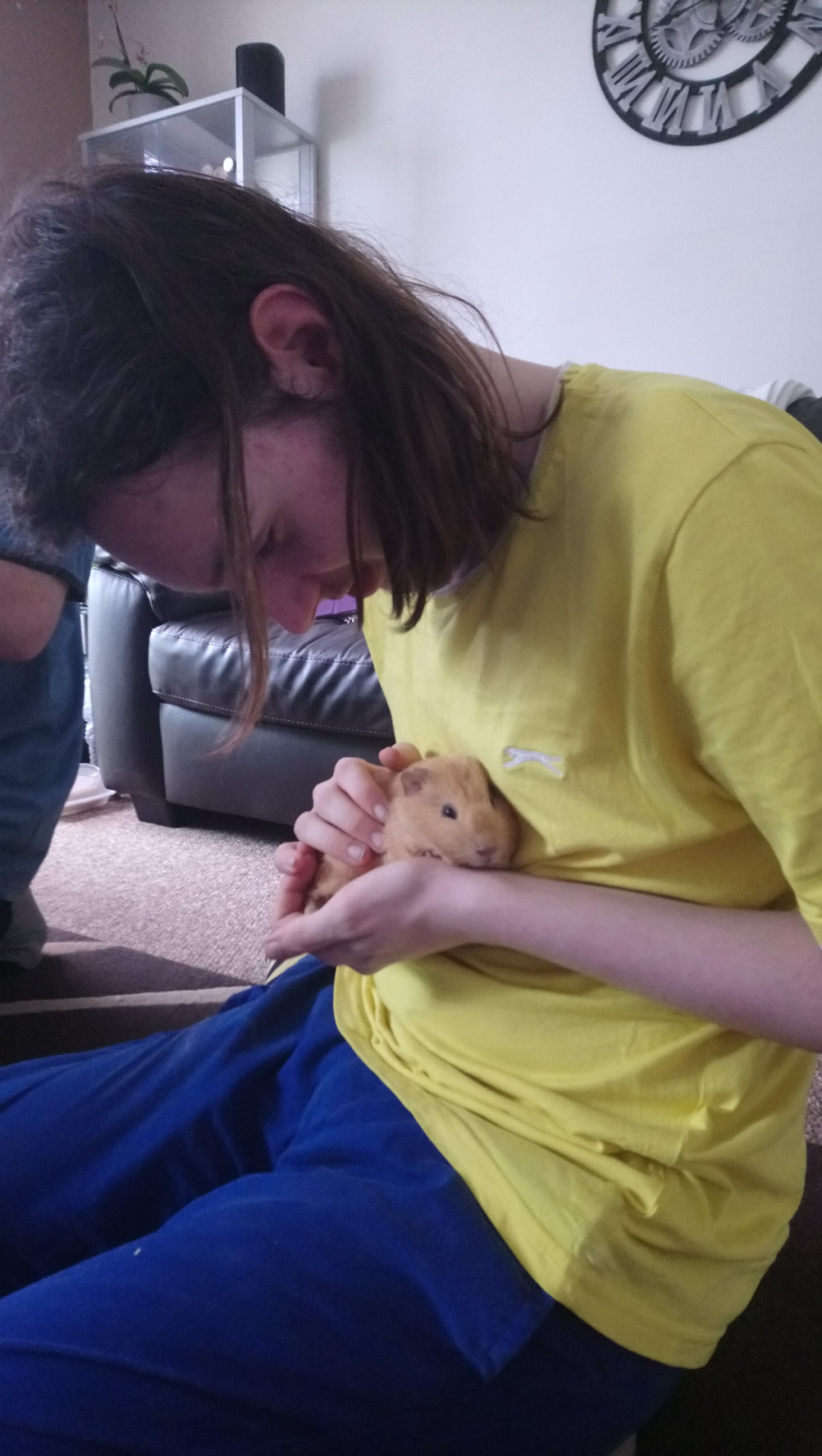 About 4 years ago I got two guinea pigs. One has short hair and is caramel in colour, he is called Caramel and the other is his brother who has long hair and is white and light brown in colour, he is called Dougel. I care for them on a daily basis, this includes feeding them twice a day and cleaning out their cage.